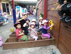 The outdoor area is spacious and well equipped with age appropriate toys.